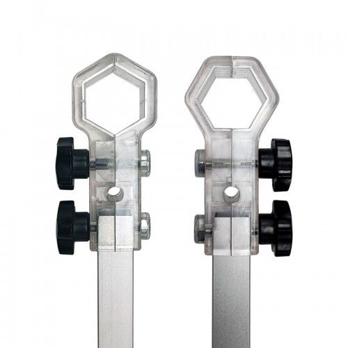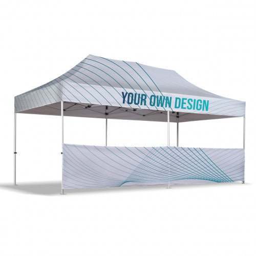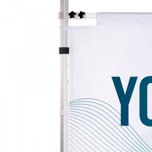 For 3 m og 4,5 m så kommer denne med en aluminiumstolpe som festes i beina. For 1,5 og 6 m er det kun bannerstoff som festes til beina.